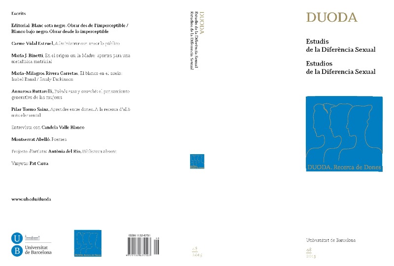 La revista DUODA, fundada en 1991, publica la escritura femenina de prosistas, poetas y artistas que conocen el misterio de la lengua materna y saben vivir, estudiar, pensar y crear sintiendo lo simbólico de la madre nacido de la armonía del caos.